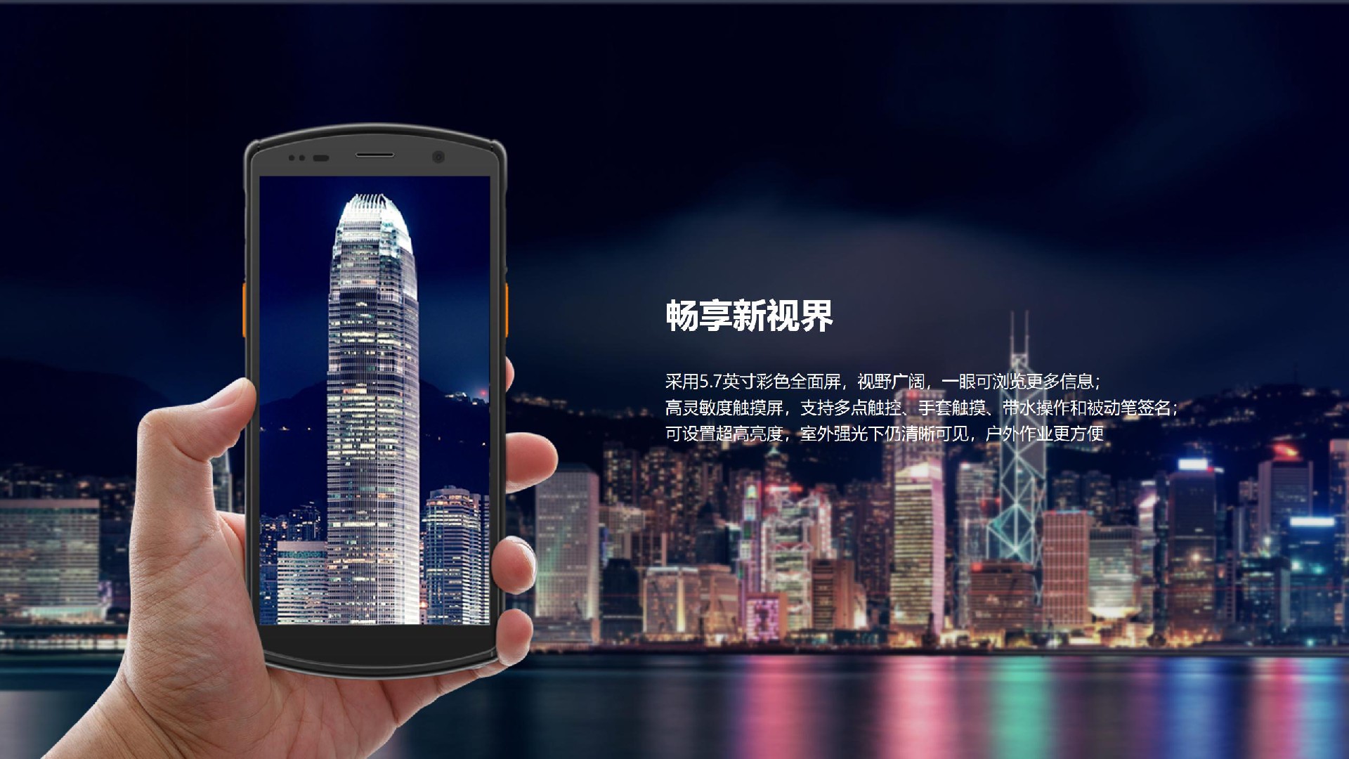 采用5.7英寸彩色全面屏,視野廣闊,一眼可瀏覽更多信息;高靈敏度觸摸屏,支持多點觸控、手套觸摸、帶水操作和被動筆簽名: