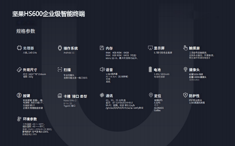 IP67級防塵防水,1.5m抗跌落,敢于直面嚴(yán)苛挑戰(zhàn),即使在惡劣的作業(yè)環(huán)境下也能順暢使用